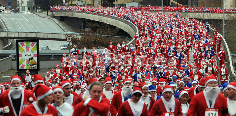 【12月3日 AFP】英中部リバプール(Liverpool)で2日、サンタクロースの扮装で5キロメートルを走る毎年恒例のマラソン大会「サンタダッシュ(Santa Dash)」が開催された。