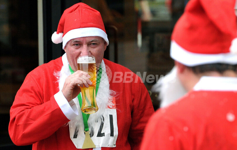 「青いサンタ」には訳がある、英リバプールのサンタ・マラソン