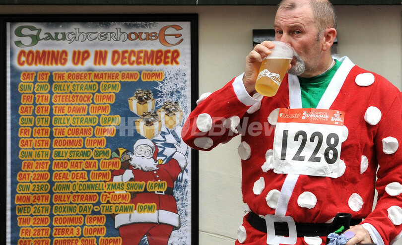 【12月3日 AFP】英中部リバプール(Liverpool)で2日、サンタクロースの扮装で5キロメートルを走る毎年恒例のマラソン大会「サンタダッシュ(Santa Dash)」が開催された。