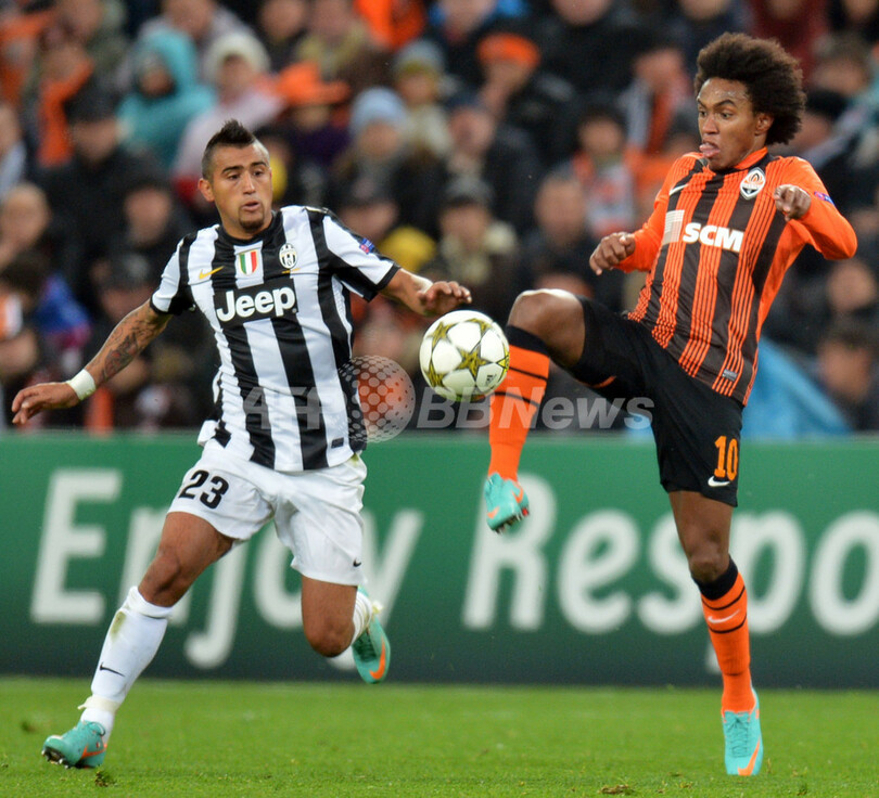 この勝利で勝ち点を12へ伸ばしたユベントスがグループ首位。シャフタールは2位通過となり、11-12シーズンのチャンピオンズリーグ(UEFA Champions League 2011-12)覇者チェルシー(Chelsea)は敗退が決まった。(c)AFP