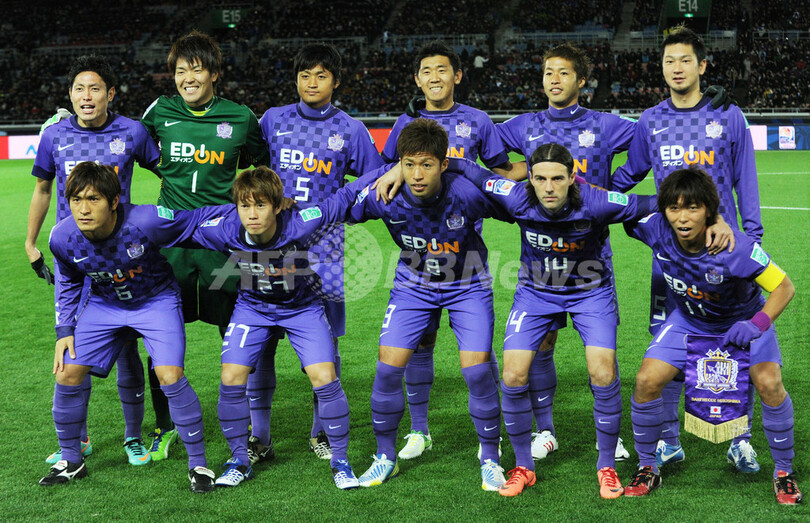 試合前の写真撮影に臨むサンフレッチェ広島の選手(2012年12月6日撮影)。(c)AFP/TOSHIFUMI KITAMURA