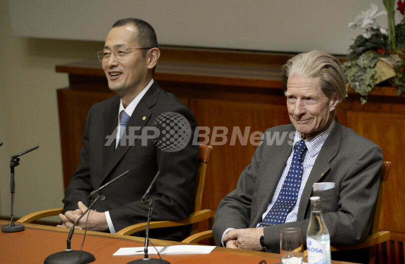 ノーベル賞の山中教授、ストックホルムで会見
