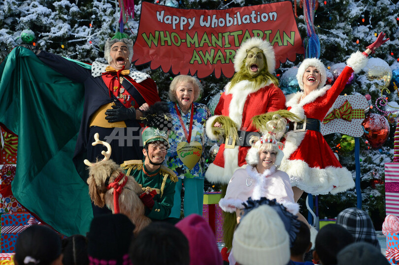 【12月8日 AFP】米カリフォルニア(California)州にある映画テーマパーク「ユニバーサル・スタジオ・ハリウッド(Universal Studios Hollywood)」で6日、クリスマスイベント「グリンチマス(Grinchmas)」が開催に先立ちロサンゼルス(Los Angeles)の小学生に公開された。米作家ドクター・スース(Dr. Suess)の児童小説「グリンチ(How the Grinch Stole Christmas!)」を題材にしたイベントで、開催は8日から31日まで。