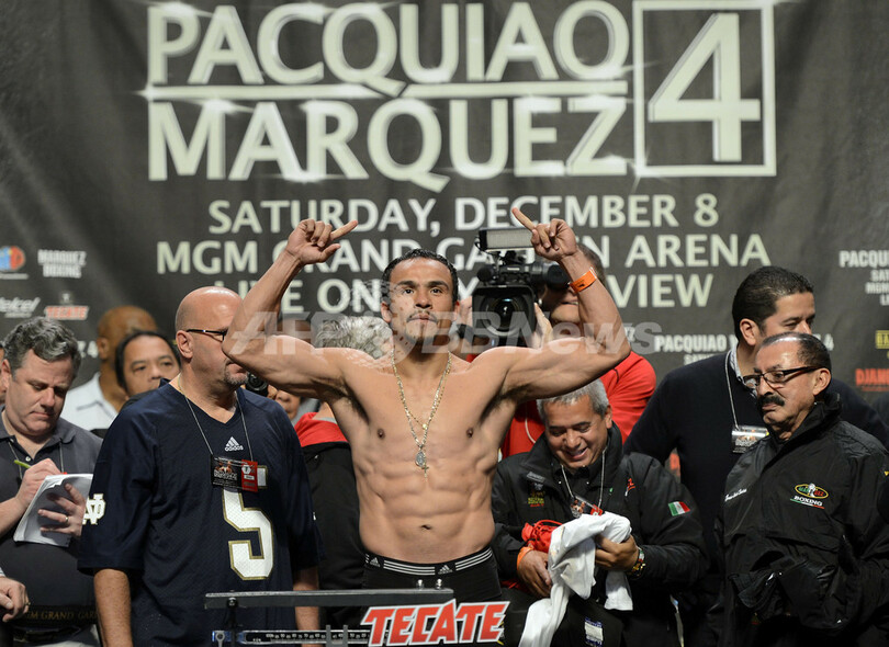 通算成績54勝4敗2引分け(38KO勝ち)のパッキャオは147ポンド(約66.7キロ)、54勝6敗1引分け(39KO勝ち)のマルケスは143ポンド(約64.9キロ)を記録した。