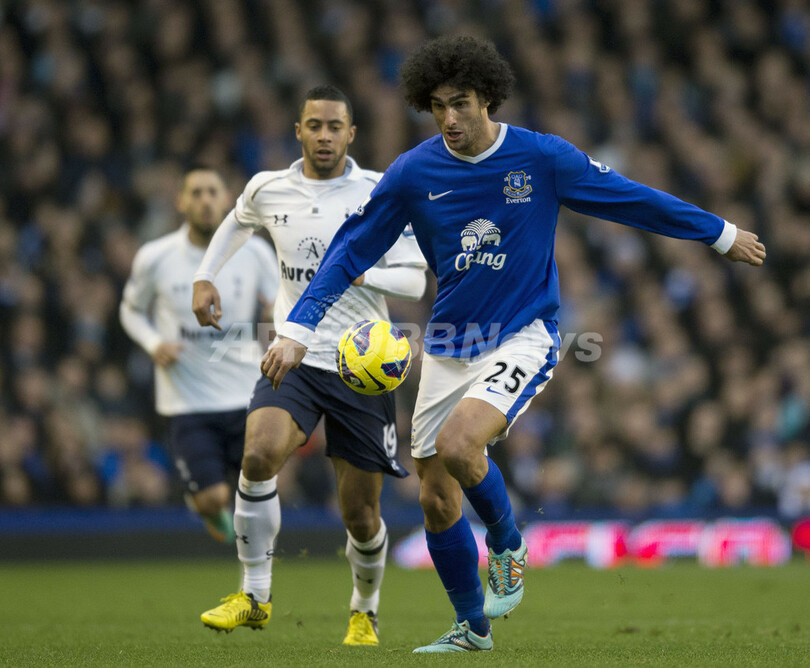 ボールをコントロールするエバートンのマルアン・フェライニ(Marouane Fellaini、2012年12月9日撮影)。(c)AFP/ADRIAN DENNIS