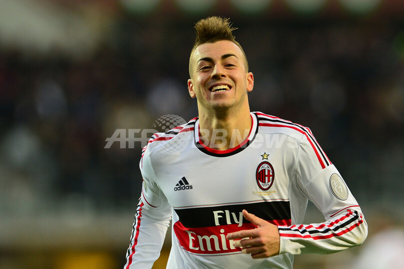 後半31分にチームの4得点目を決め喜ぶACミランのステファン・エル・シャーラウィ(Stephan El Shaarawy、2012年12月9日撮影)。(c)AFP/GIUSEPPE CACACE