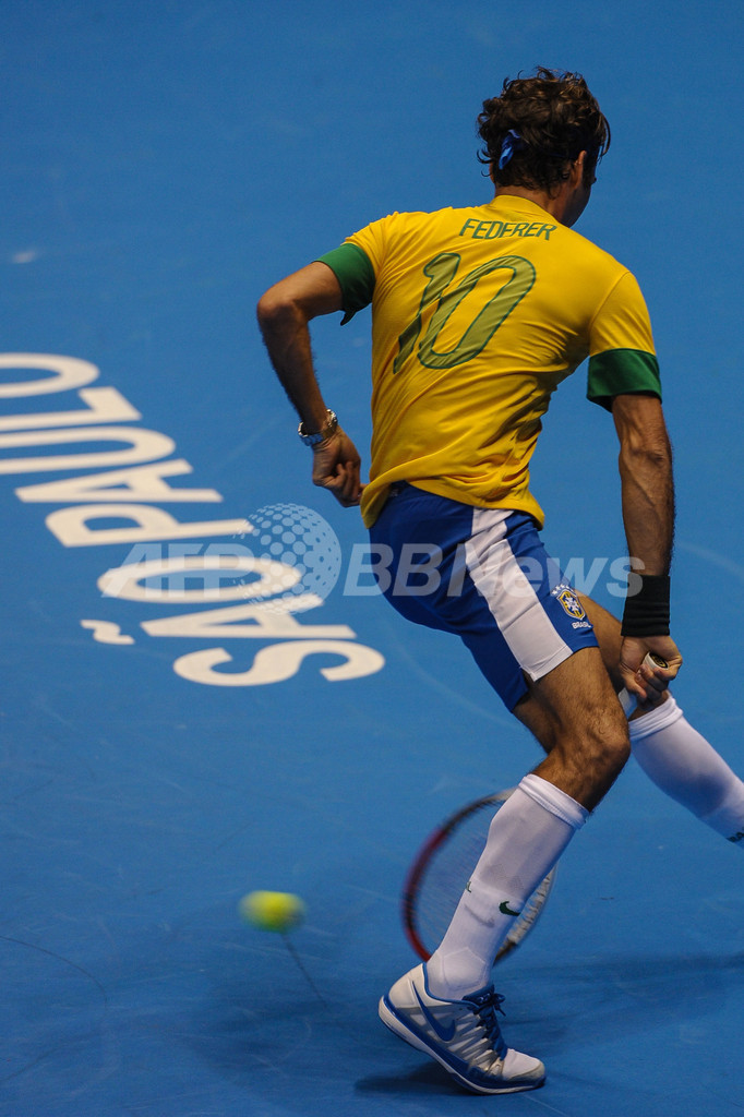 フェデラー、サッカーブラジル代表のユニホームでエキシビション