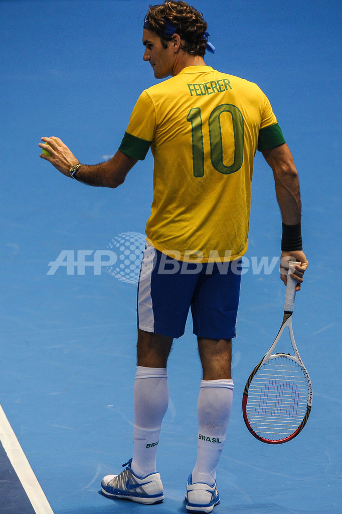 フェデラー、サッカーブラジル代表のユニホームでエキシビション