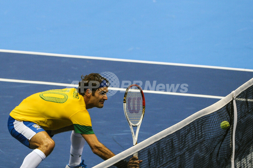 フェデラー、サッカーブラジル代表のユニホームでエキシビション
