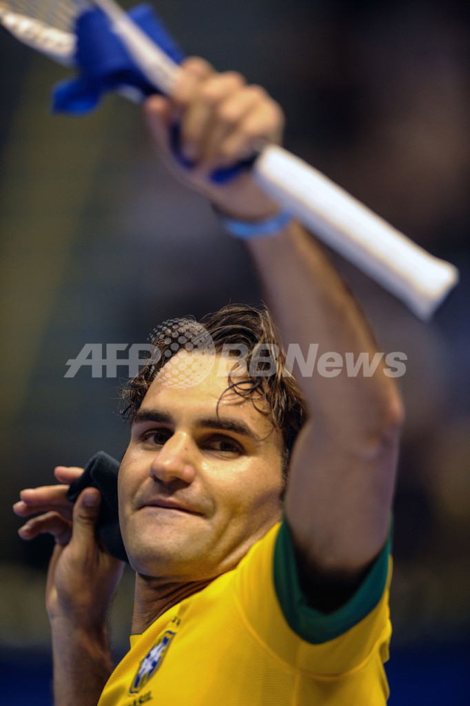 フェデラー、サッカーブラジル代表のユニホームでエキシビション