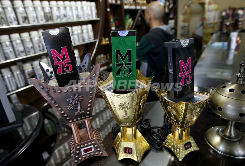 ガザ市(Gaza City)近郊の高所得者層が住むリマル(Rimal)で商店「ステイ・スタイリッシュ(Stay Stylish)」を営むアブ・アハメド(Abu Ahmed)さんは、新たに売り出す香水に大胆な商品名を付けた。「抵抗のロケット弾、ガザの勝利の象徴として、M75という名前を思い付いたんだ」