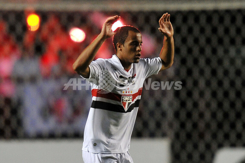 先制点を決め喜ぶサンパウロFCのルーカス・モウラ(Lucas Rodrigues Moura da Silva、2012年12月12日撮影)。(c)AFP/Nelson ALMEIDA