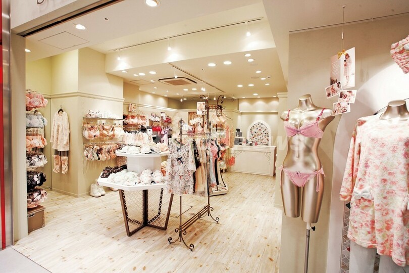 ワコールの高級ブランド「サルート」から、ブラ&ショーツ1995円といった手頃なラインまで幅広いラインアップで展開するインナーウエアのセレクトショップ。「インナーひとつで気分がアップする」ことから、フィッティングにも時間をかけてアドバイス。肌触りの良い素材を使ったルームウエアや雑貨、小物も多彩に揃っている。