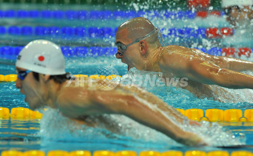 レースに臨む瀬戸大也(左、2012年12月13日撮影)。(c)AFP/BULENT KILIC