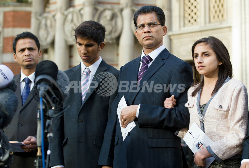 ミサにはサルダンさんの夫ベネディクト・バルボザ(Benedict Barboza)さんと息子のジュナル(Junal Saldanha)さん、娘のリシャ(Lisha Saldanha)さんら遺族が参列。英議員らも出席した。(c)AFP