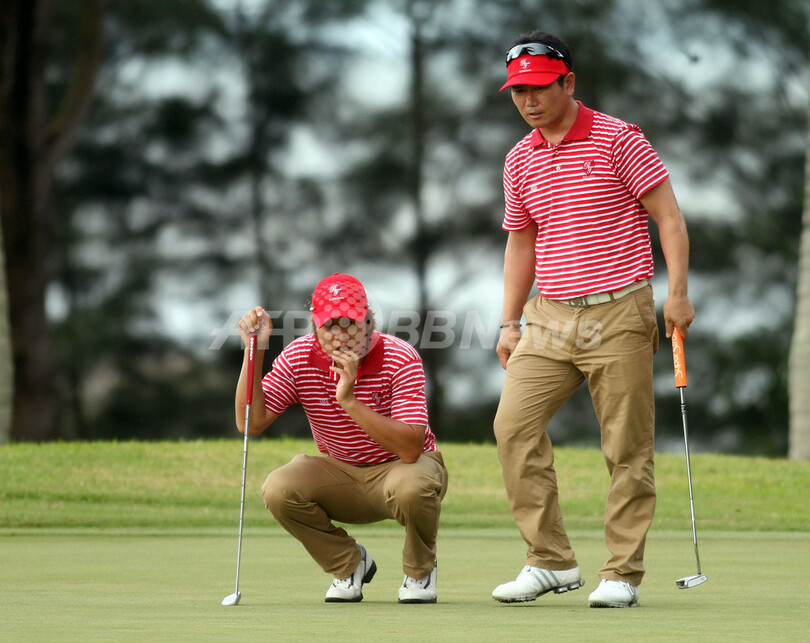 キラデク・アフィバーンラト(Kiradech Aphibarnrat、タイ)/ジーブ・ミルカ・シン(Jeev Milkha Singh、インド)組はミゲル・アンヘル・ヒメネス(Miguel Angel Jimenez、スペイン)/ホセ・マリア・オラサバル(Jose Maria Olazabal、スペイン)組と、ベ・サンムン(Bae Sang-Moon、韓国)/呉阿順(Ashun Wu、ゴ・アジュン、中国)組はニコラス・コルサート(Nicolas Colsaerts、ベルギー)/マルセル・シェム(Marcel Siem、ドイツ)組とそれぞれ引き分けた。(c)AFP