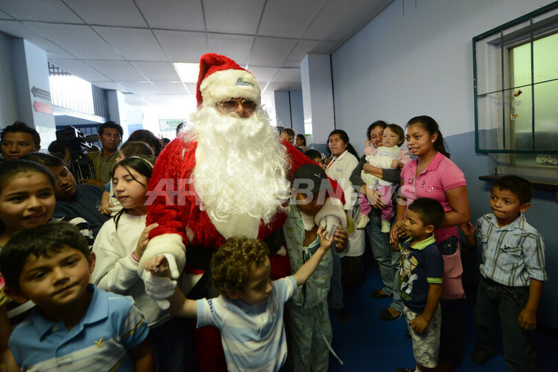 【12月18日 AFP】グアテマラの首都グアテマラ市(Guatemala City)で14日、サンタクロースに扮(ふん)した男性がサン・フアン・デ・ディオス病院(San Juan de Dios Hospital)の小児病棟を訪れ、小さな患者たちを励ました。(c)AFP