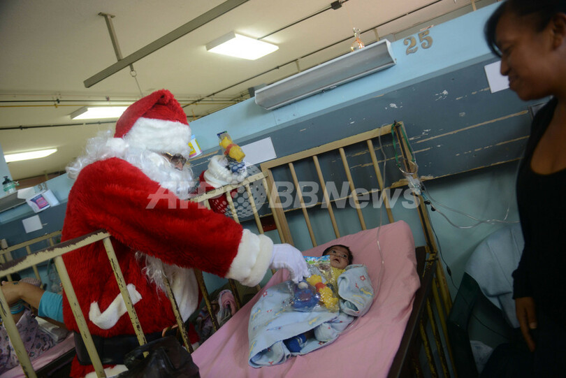 【12月18日 AFP】グアテマラの首都グアテマラ市(Guatemala City)で14日、サンタクロースに扮(ふん)した男性がサン・フアン・デ・ディオス病院(San Juan de Dios Hospital)の小児病棟を訪れ、小さな患者たちを励ました。(c)AFP