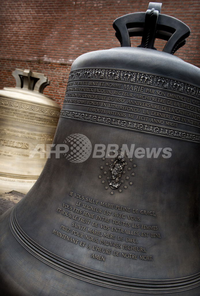 【12月22日 AFP】来年の着工850周年を記念して新調されることになった仏パリ(Paris)のノートルダム大聖堂(Notre Dame Cathedral)の鐘のうち、「マリー(Marie)」と名付けられた最大の鐘が20日、オランダの鋳造所からフランスに向け出発した。