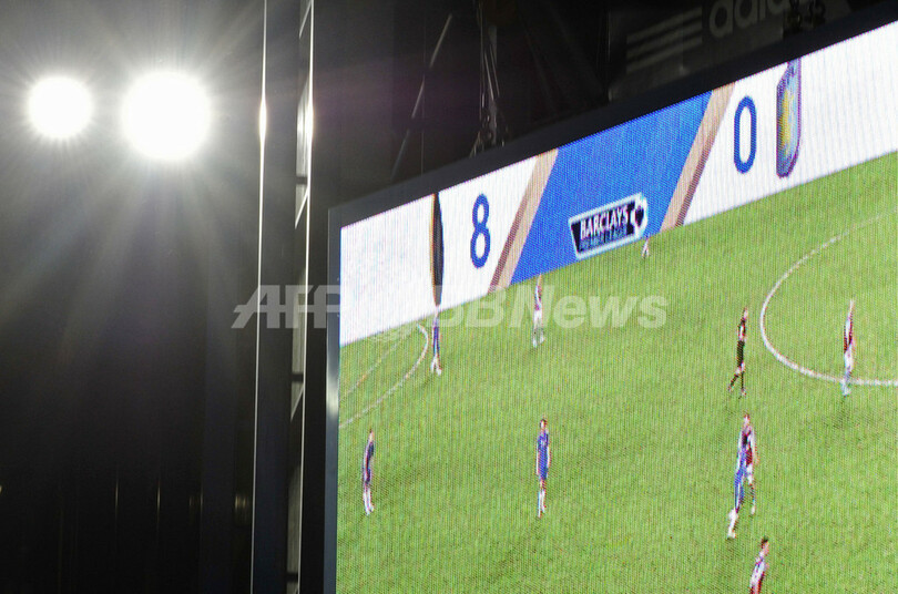試合会場のスタンフォード・ブリッジ(Stamford Bridge)のスクリーンに映し出されたスコア(2012年12月23日撮影)。(c)AFP/GLYN KIRK