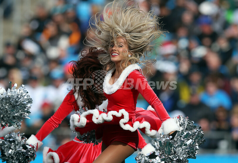 米ノースカロライナ(North Carolina)州シャーロット(Charlotte)のバンク・オブ・アメリカ・スタジアム(Bank of America Stadium)でパフォーマンスを披露するカロライナ・パンサーズ(Carolina Panthers)のチアリーダー(2012年12月23日撮影)。(c)AFP/Getty Images/Streeter Lecka