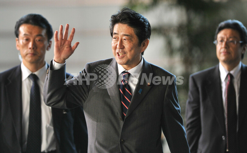 ニュース 政治・経済 第96代首相に安倍氏 2012年12月26日 16:54 発信地:東京 [ アジア・オセアニア 東京 ] このニュースをシェア ‹ › ❮ 2/8 ❯ 衆参両院は26日、首相指名投票を行い、自民党の安倍晋三(Shinzo Abe)総裁(58)を第96代首相に指名した。写真は首相官邸に到着した安倍氏(中央、2012年12月26日撮影)。(c)AFP/Toru YAMANAKA 画像作成中 ! 【12月26日 AFP】衆参両院は26日、首相指名投票を行い、自民党の安倍晋三(Shinzo Abe)総裁(58)を第96代首相に指名した。(c)AFP 政治・経済 一覧へ> メディア・報道関係・法人の方向け 写真・動画 購入のお問合せ>