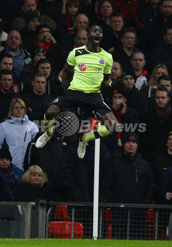 後半23分にチームの3得点目を決め歓喜するニューカッスルのパピス・シセ(Papiss Cisse、2012年12月26日撮影)。(c)AFP/ANDREW YATES
