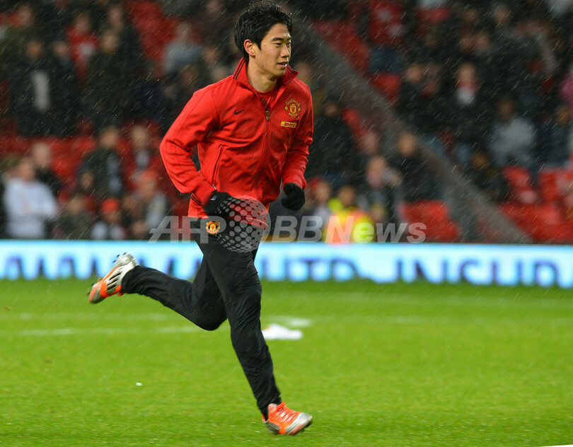試合前にピッチで体を動かすマンチェスター・ユナイテッドの香川真司(Shinji Kagawa、2012年12月26日撮影)。(c)AFP/ANDREW YATES