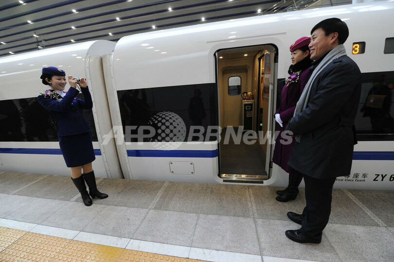 ニュース 政治・経済 中国、世界最長の高速鉄道が開業 2012年12月26日 19:41 発信地:中国 [ 中国・台湾 中国 ] このニュースをシェア ‹ › ❮ 4/12 ❯ 中国の北京(Beijing)と広東(Guangdong)省広州(Guangzhou)を結ぶ2298キロメートルの世界最長の高速鉄道が26日、全線開業した。平均時速300キロで、これまで22時間かかった北京・広州間を8時間でつなぐ。写真は北京の駅で、高速鉄道と並んで立つ乗客の記念撮影に協力する乗務員(2012年12月26日撮影)。(c)AFP 画像作成中 ! 【12月26日 AFP】中国の北京(Beijing)と広東(Guangdong)省広州(Guangzhou)を結ぶ2298キロメートルの世界最長の高速鉄道が26日、全線開業した。平均時速300キロで、これまで22時間かかった北京・広州間を8時間でつなぐ。(c)AFP 政治・経済 一覧へ> メディア・報道関係・法人の方向け 写真・動画 購入のお問合せ>