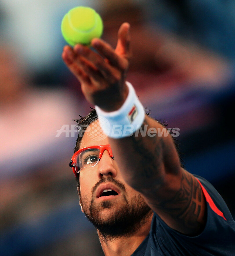 サーブトスを上げるヤンコ・ティプサレビッチ(2012年12月27日撮影)。(c)AFP/MARWAN NAAMANI