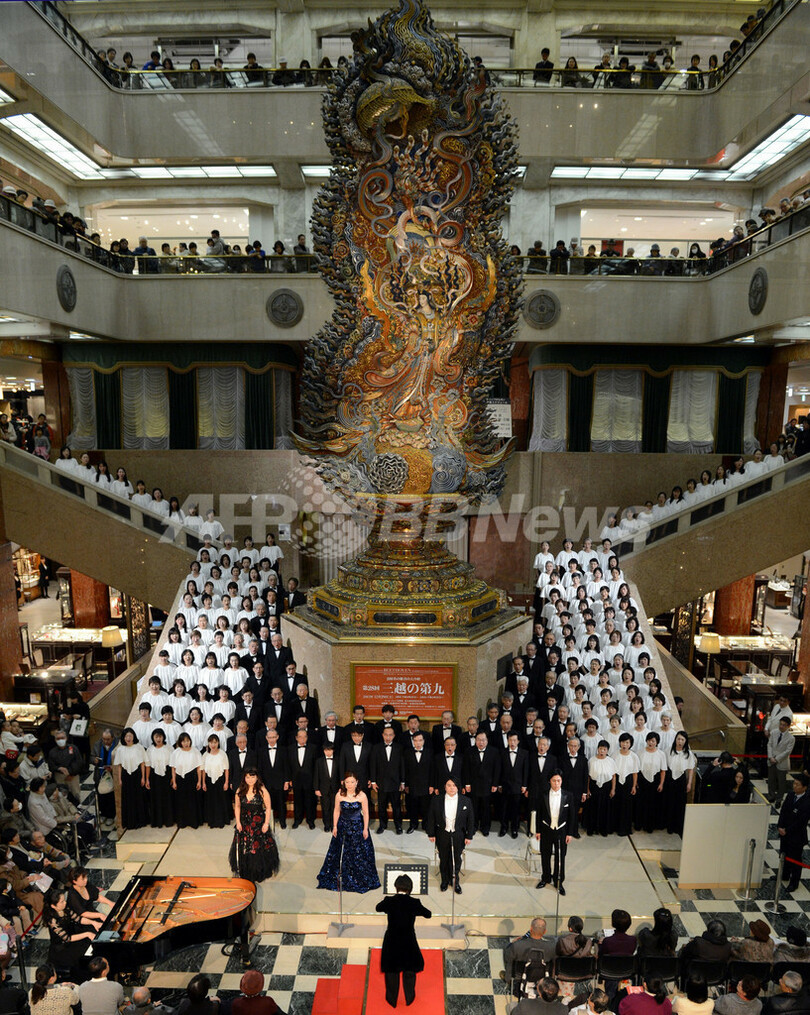 ニュース ライフ 年末恒例の「第9」合唱、三越本店で開催 2012年12月30日 11:49 発信地:東京 [ アジア・オセアニア 東京 ] このニュースをシェア ‹ › ❮ 5/5 ❯ 東京・日本橋三越(Mitsukoshi)本店で行われたベートーベン(Ludwig Van Beethoven)の交響曲「第9番(Symphony No.9)」の大合唱(2012年12月29日撮影)。(c)AFP/TOSHIFUMI KITAMURA 画像作成中 ! 【12月30日 AFP】都内・日本橋の三越本店で29日、年末恒例のルートウィヒ・ベートーベン(Ludwig van Beethoven)の交響曲第9番の大合唱が行われ、総勢178人のメンバーが歌声を披露した。今年で28回目を迎える三越本店の「ニューイヤーズ・コンサート」は毎年、年末の買い物に訪れる人たちを楽しませている。(c)AFP ライフ 一覧へ> メディア・報道関係・法人の方向け 写真・動画 購入のお問合せ>