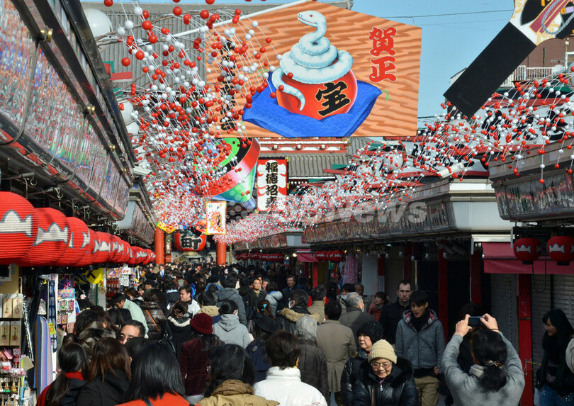 ニュース ライフ 浅草・仲見世、暮れの賑わい 2012年12月30日 10:40 発信地:東京 [ アジア・オセアニア 東京 ] このニュースをシェア ‹ › ❮ 3/6 ❯ 東京・浅草の浅草寺(Sensoji)に続く仲見世(Nakamise)商店街(2012年12月27日撮影)。(c)AFP/Yoshikazu TSUNO 画像作成中 ! 【12月30日 AFP】お正月の飾りつけがされた東京・浅草の浅草寺(Sensoji)に続く仲見世(Nakamise)商店街。新年を前に、浅草寺には多くの観光客が詰めかけている。(c)AFP ライフ 一覧へ> メディア・報道関係・法人の方向け 写真・動画 購入のお問合せ>