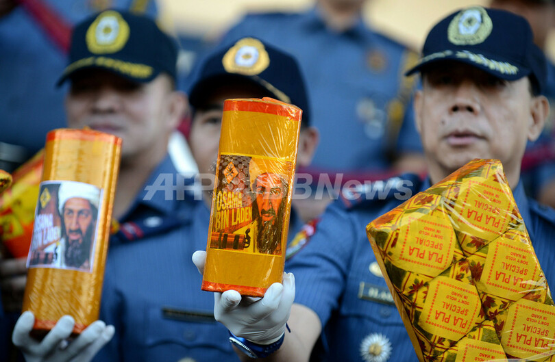 【12月31日 AFP】フィリピンのマニラ(Manila)で29日、新年の違法花火の使用を最小限にとどめてもらおうと、押収した爆竹を警察が公開した。フィリピンの人口のほとんどはカトリック教徒だが、爆竹の騒音が悪霊を追い払って幸運をもたらすという古くからの迷信や中国の伝統に従って爆竹を打ち鳴らして新年を祝う習慣がある。