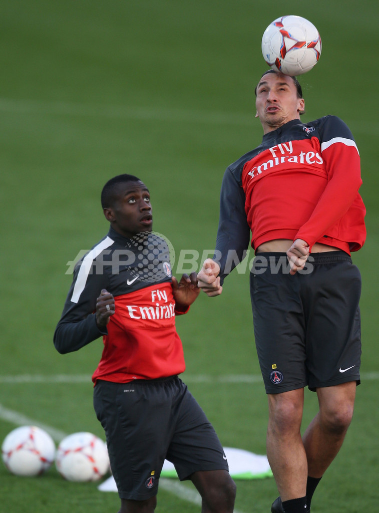 練習に臨むパリ・サンジェルマンのブライズ・マトゥイディ(Blaise Matuidi、左)とズラタン・イブラヒモビッチ(Zlatan Ibrahimovic、2012年12月31日撮影)。(c)AFP/AL-WATAN DOHA/KARIM JAAFAR