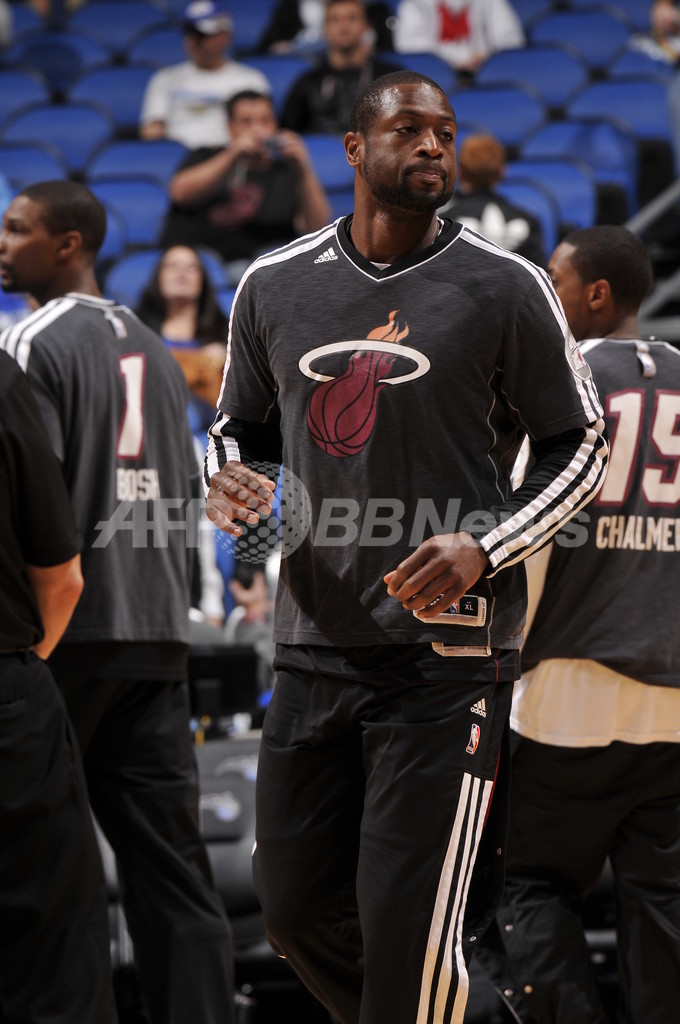 試合前の練習に臨むマイアミ・ヒートのドウェイン・ウェイド(Dwyane Wade、2012年12月31日撮影)。(c)AFP/Getty Images/NBAE/Fernando Medina