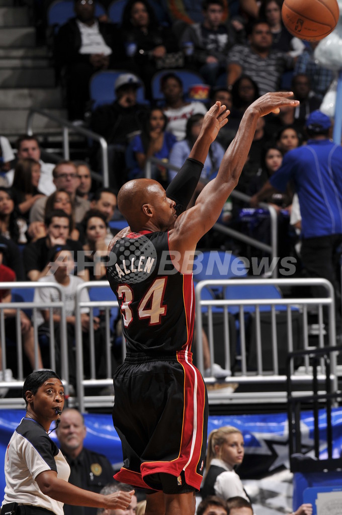 3ポイントシュートを放つマイアミ・ヒートのレイ・アレン(Ray Allen、2012年12月31日撮影)。(c)AFP/Getty Images/NBAE/Fernando Medina