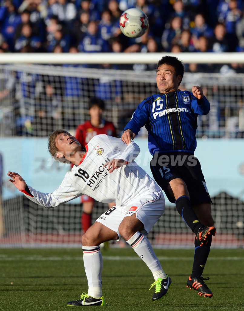 ボールを競るガンバ大阪の今野泰幸(Yasuyuki Konno、右)と柏レイソルの田中順也(Junya Tanaka、2013年1月1日撮影)。(c)AFP/TOSHIFUMI KITAMURA