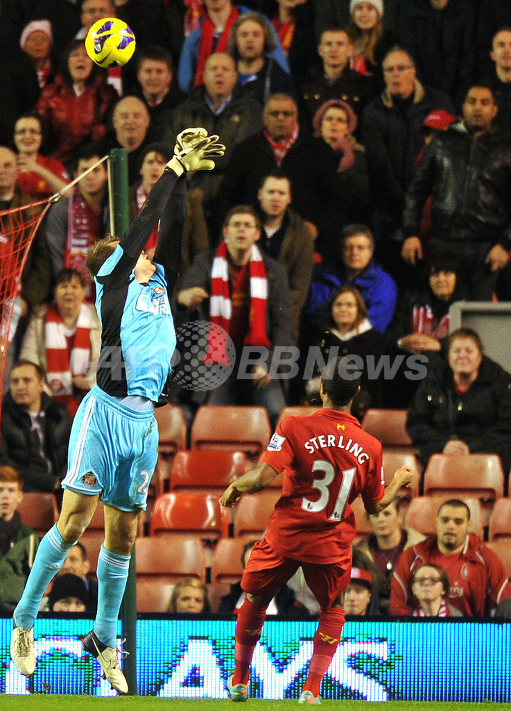 チェルシー(Chelsea)から獲得した新戦力のダニエル・スターリッジ(Daniel Sturridge)がスタンドで試合を見つめる中、リバプールは前半19分にスアレスのパスに走り込んだスターリングが、サンダーランドのGKシモン・ミニョレ(Simon Mignolet)の頭上を越えるループシュートを決めて先制点した。