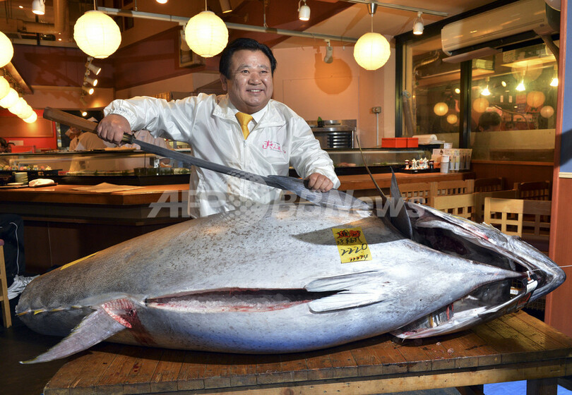 ニュース 政治・経済 築地で初競り、クロマグロに最高値の1億5540万円 2013年1月5日 12:31 発信地:東京 [ アジア・オセアニア 東京 ] このニュースをシェア ‹ › ❮ 16/16 ❯ 都内・築地の中央卸売市場で5日、今年の初競りが行われ、222キロのクロマグロが過去の最高値を上回る1億5540万円で競り落とされた。写真は、最高値で落札したばかりのクロマグロを披露する寿司チェーン「すしざんまい(Sushi-Zanmai)」の木村清(Kiyoshi Kimura)社長(2013年1月4日撮影)。(c)AFP/Yoshikazu TSUNO 画像作成中 ! 【1月5日 AFP】都内・築地の中央卸売市場で5日、今年の初競りが行われ、222キロのクロマグロが過去の最高値を上回る1億5540万円で競り落とされた。(c)AFP 政治・経済 一覧へ> メディア・報道関係・法人の方向け 写真・動画 購入のお問合せ>