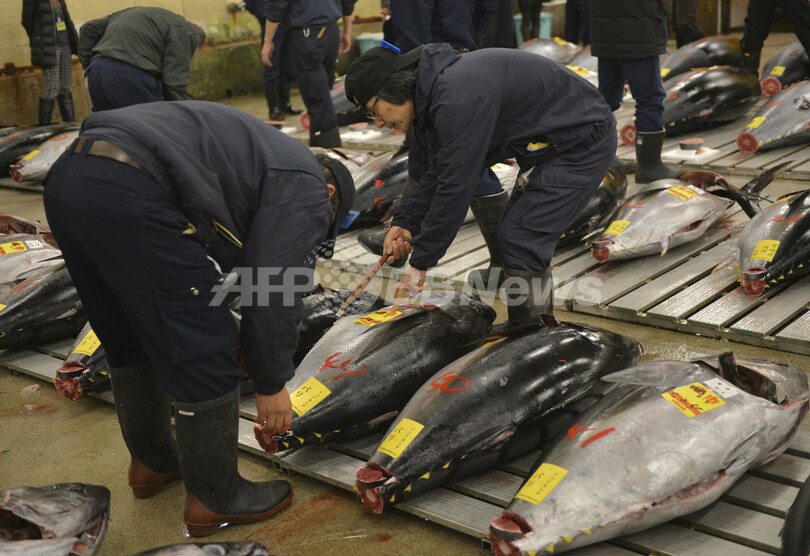 ニュース 政治・経済 築地で初競り、クロマグロに最高値の1億5540万円 2013年1月5日 12:31 発信地:東京 [ アジア・オセアニア 東京 ] このニュースをシェア ‹ › ❮ 2/16 ❯ 都内・築地の中央卸売市場で5日、今年の初競りが行われ、222キロのクロマグロが過去の最高値を上回る1億5540万円で競り落とされた。写真は、初競りを前に市場に並べられたクロマグロを確認する人たち(2013年1月4日撮影)。(c)AFP/Yoshikazu TSUNO 画像作成中 ! 【1月5日 AFP】都内・築地の中央卸売市場で5日、今年の初競りが行われ、222キロのクロマグロが過去の最高値を上回る1億5540万円で競り落とされた。(c)AFP 政治・経済 一覧へ> メディア・報道関係・法人の方向け 写真・動画 購入のお問合せ>