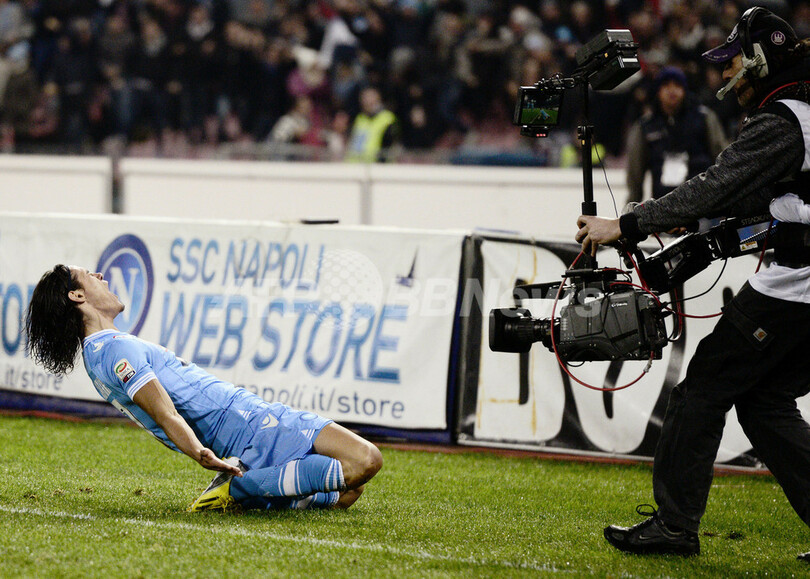 得点を決め歓喜するナポリのエディンソン・カヴァーニ(Edinson Cavani、2013年1月6日撮影)。(c)AFP/ROBERTO SALOMONE