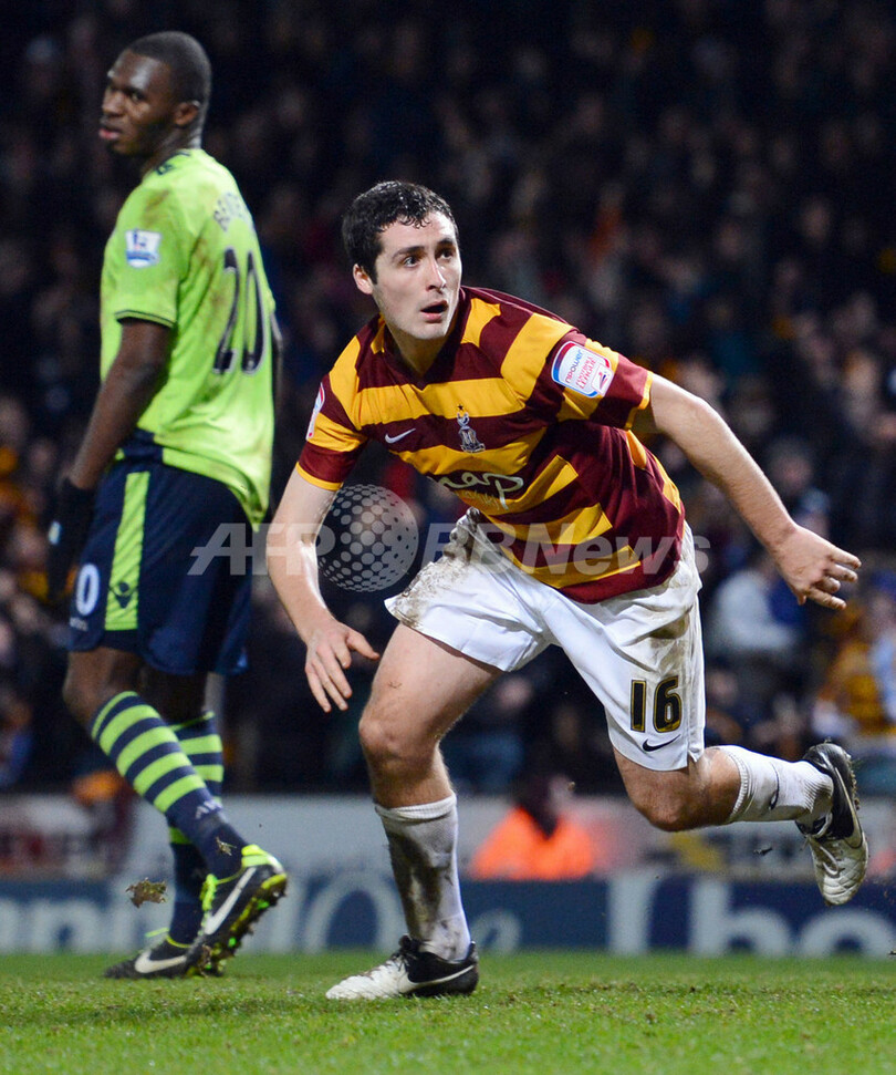 チーム3得点目を挙げるブラッドフォード・シティのカール・マクヒュー(Carl McHugh、2013年1月8日撮影)。(c)AFP/PAUL ELLIS