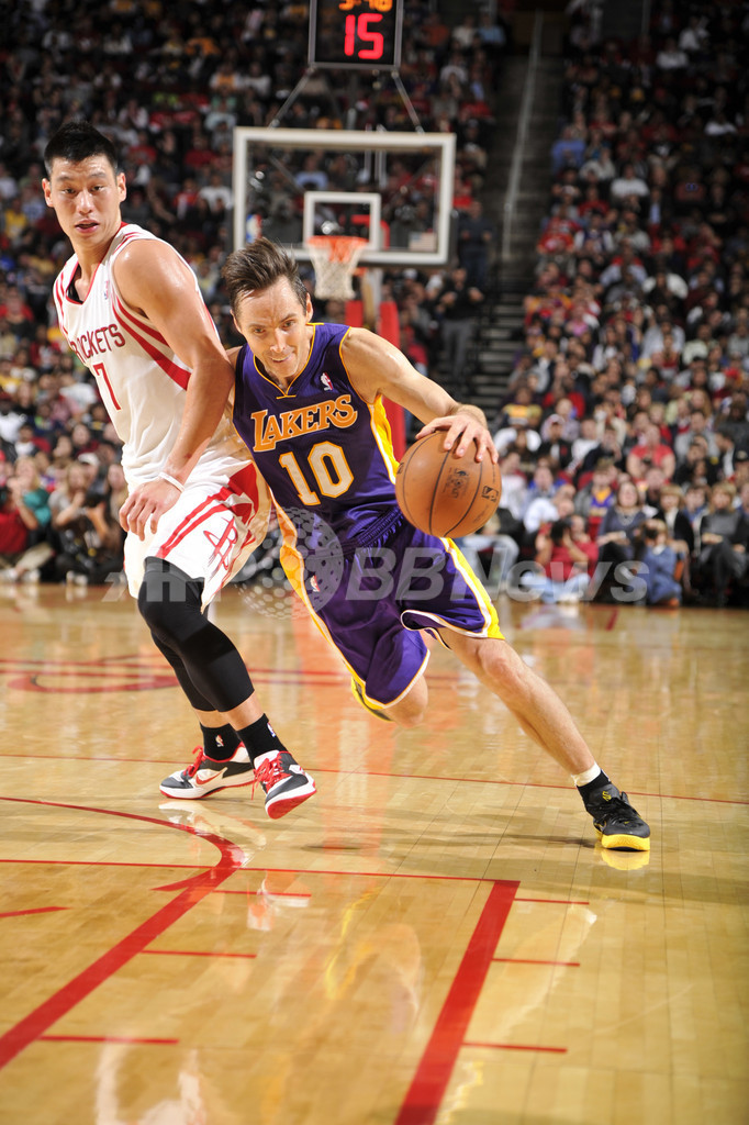 ナッシュは16得点10アシストの活躍を見せたものの、ドワイト・ハワード(Dwight Howard)とパウ・ガソル(Pau Gasol)を欠いたレイカーズは112-125でロケッツに敗れ、ナッシュの快挙を白星で飾ることはできなかった。(c)AFP