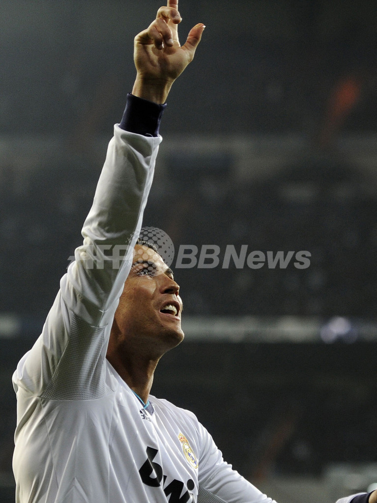 得点を決め歓喜するレアル・マドリードのクリスティアーノ・ロナウド(Cristiano Ronaldo、2013年1月9日撮影)。(c)AFP/DOMINIQUE FAGET