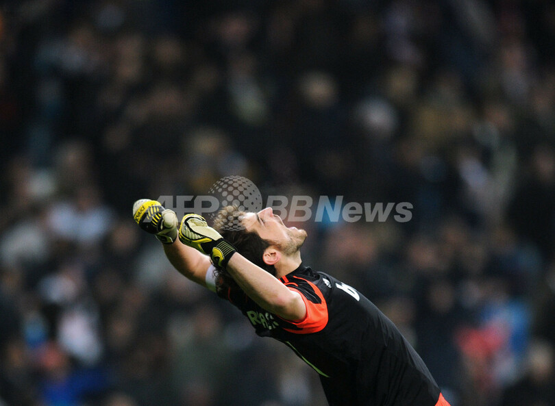 得点を喜ぶレアル・マドリードのイケル・カシージャス(Iker Casillas、2013年1月9日撮影)。(c)AFP/DOMINIQUE FAGET