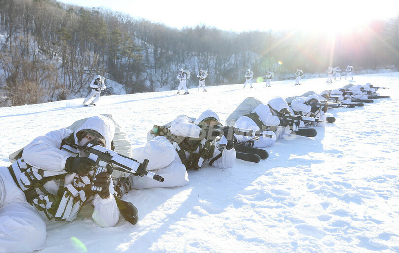 ニュース 政治・経済 韓国軍特殊部隊が冬季訓練 2013年1月10日 10:28 発信地:平昌/韓国 [ 韓国・北朝鮮 韓国 ] このニュースをシェア ‹ › ❮ 3/5 ❯ 韓国北東部・平昌(Pyeongchang)で冬季訓練を行う軍特殊部隊(2013年1月9日撮影)。(c)AFP/DONG-A ILBO 画像作成中 ! 【1月10日 AFP】韓国北東部・平昌(Pyeongchang)で9日、軍特殊部隊が冬季訓練を行った。韓国は、朝鮮戦争(1950~53年)後も、理論上は北朝鮮と戦争状態にある。(c)AFP 政治・経済 一覧へ> メディア・報道関係・法人の方向け 写真・動画 購入のお問合せ>