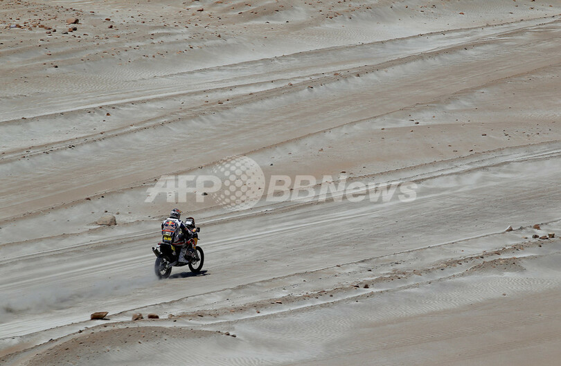 二輪部門ではヤマハ(YAMAHA)のデビッド・カストー(David Casteu、フランス)がステージ優勝を飾り、1分9秒遅れの2位に入った同じくヤマハのオリビエ・ペイン(Olivier Pain、フランス)が総合首位を守った。しかしながら、総合2位につけるカストーがペインとの差を1分15秒に縮めている。(c)AFP