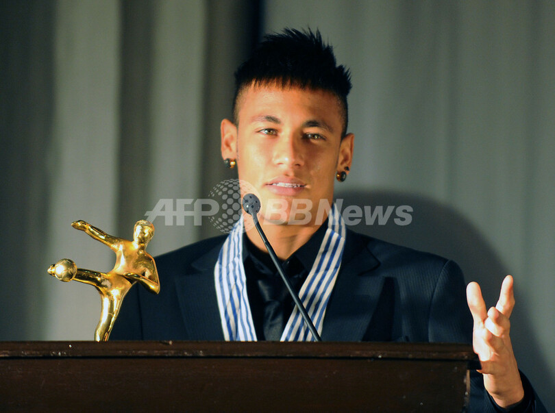 【1月10日 AFP】サッカー、カンピオナート・ブラジレイロ(ブラジル全国選手権)1部のサントスFC(Santos FC)に所属するネイマール(Neymar da Silva Santos Junior)は9日、ウルグアイのエル・パイス(El Pais)紙が選出する2012年のサッカー南米年間最優秀選手に選出され、同国のモンテビデオ(Montevideo)で行われた受賞式に出席した。(c)AFP