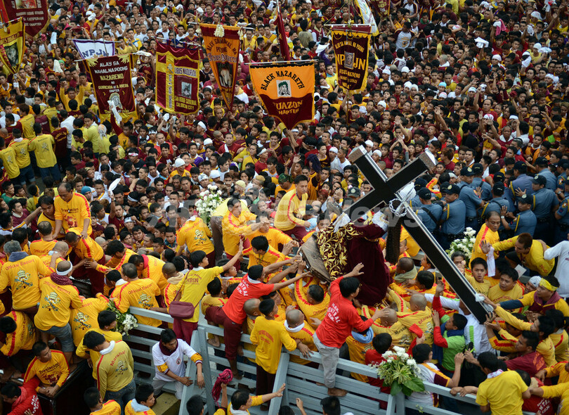 ブラックナザレ像はメキシコから宣教師によって1607年にマニラに運んで来られたもので、船の中で火事に遭い黒く焦げてしまったと伝わる。奇跡を起こす力があると100年以上前から信じられており、マニラ旧市街を練り歩く像には、はだしの男女がどうにかして触れようと殺到。像が普段安置されているキアポ(Quiapo)教会によれば、10時間に及ぶパレードには900万人の巡礼者が詰めかけたという。警察によるとこの日の祭りで、164人が軽傷を負った。