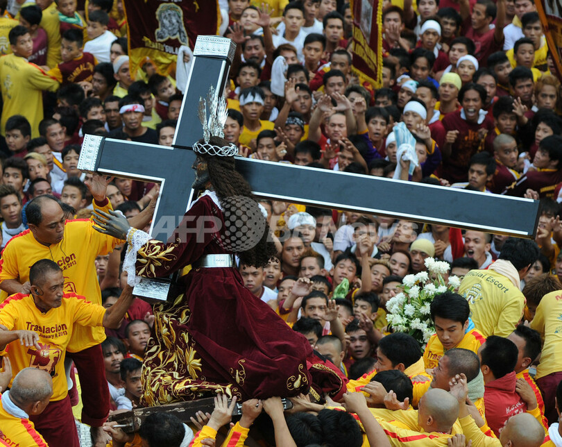 ブラックナザレ像はメキシコから宣教師によって1607年にマニラに運んで来られたもので、船の中で火事に遭い黒く焦げてしまったと伝わる。奇跡を起こす力があると100年以上前から信じられており、マニラ旧市街を練り歩く像には、はだしの男女がどうにかして触れようと殺到。像が普段安置されているキアポ(Quiapo)教会によれば、10時間に及ぶパレードには900万人の巡礼者が詰めかけたという。警察によるとこの日の祭りで、164人が軽傷を負った。